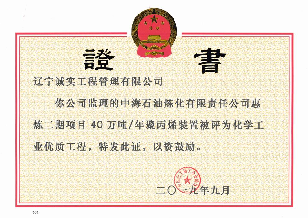 2019年化學(xué)工業(yè)優(yōu)質(zhì)獎(jiǎng)(中海油惠煉...