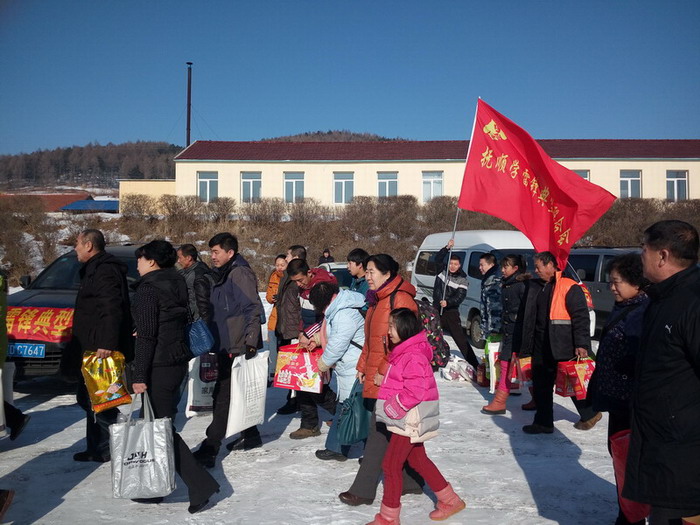 早上9點,滿載著大米、白面、豆油等捐助物的7輛汽車從撫順北站出發(fā),一路向東前往清源甘井子小學(xué)。中午10點半,車隊到達(dá)清源英額門鎮(zhèn),在當(dāng)?shù)貙W(xué)雷鋒典型聯(lián)合會分會劉先生的帶領(lǐng)之下,車隊于11點到達(dá)了清源甘井子小學(xué)。車輛剛剛駛?cè)雽W(xué)校,迫不及待的學(xué)生以及學(xué)生家長們就都出門迎接了出來。找到各自幫扶對象的17位孩子見到了自己的資助人都激動得熱淚盈眶。在甘井子小學(xué)高校長的帶領(lǐng)下,大家把資助物品紛紛運(yùn)到了學(xué)校食堂。在食堂把物品授予了這17位孩子,百姓雷鋒們也為他們派發(fā)了新春紅包,并與他們進(jìn)行了親切的交流,目的是鼓勵這17位家庭困難的學(xué)生好好學(xué)習(xí),勇敢的面對生活。