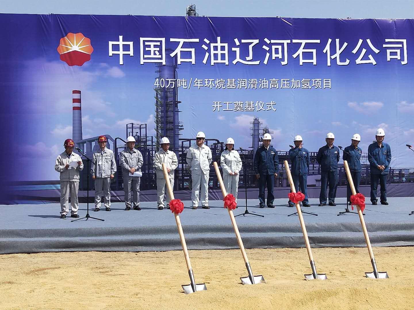 2018年5月8日上午9時58分,風和日麗,晴空萬里。中國石油遼河石化公司40萬噸/年環(huán)烷基潤滑油高壓加氫項目開工奠基儀式在遼河石化廠區(qū)項目現(xiàn)場隆重舉行。我公司總經(jīng)理田立奎、項目總監(jiān)理工程師黃思敏以及項目監(jiān)理部全體監(jiān)理人員參加了會議。