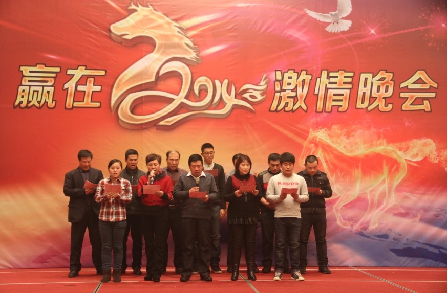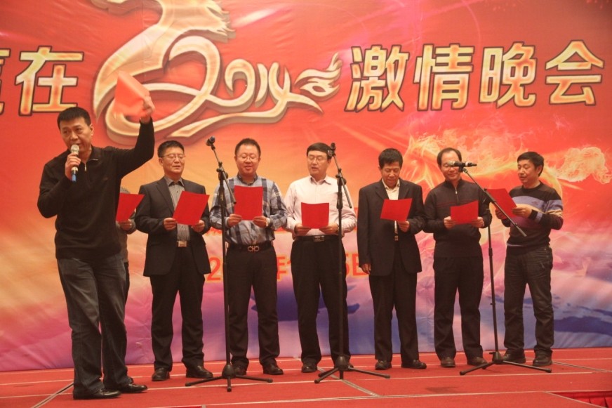 年終總結(jié)大會(huì)由副總經(jīng)理祝奕主持。總經(jīng)理孫學(xué)良和董事長趙劍平分別進(jìn)行了發(fā)言。